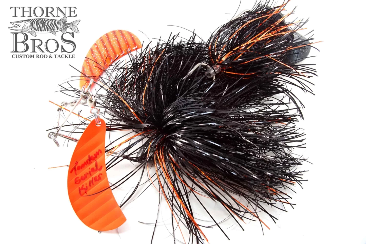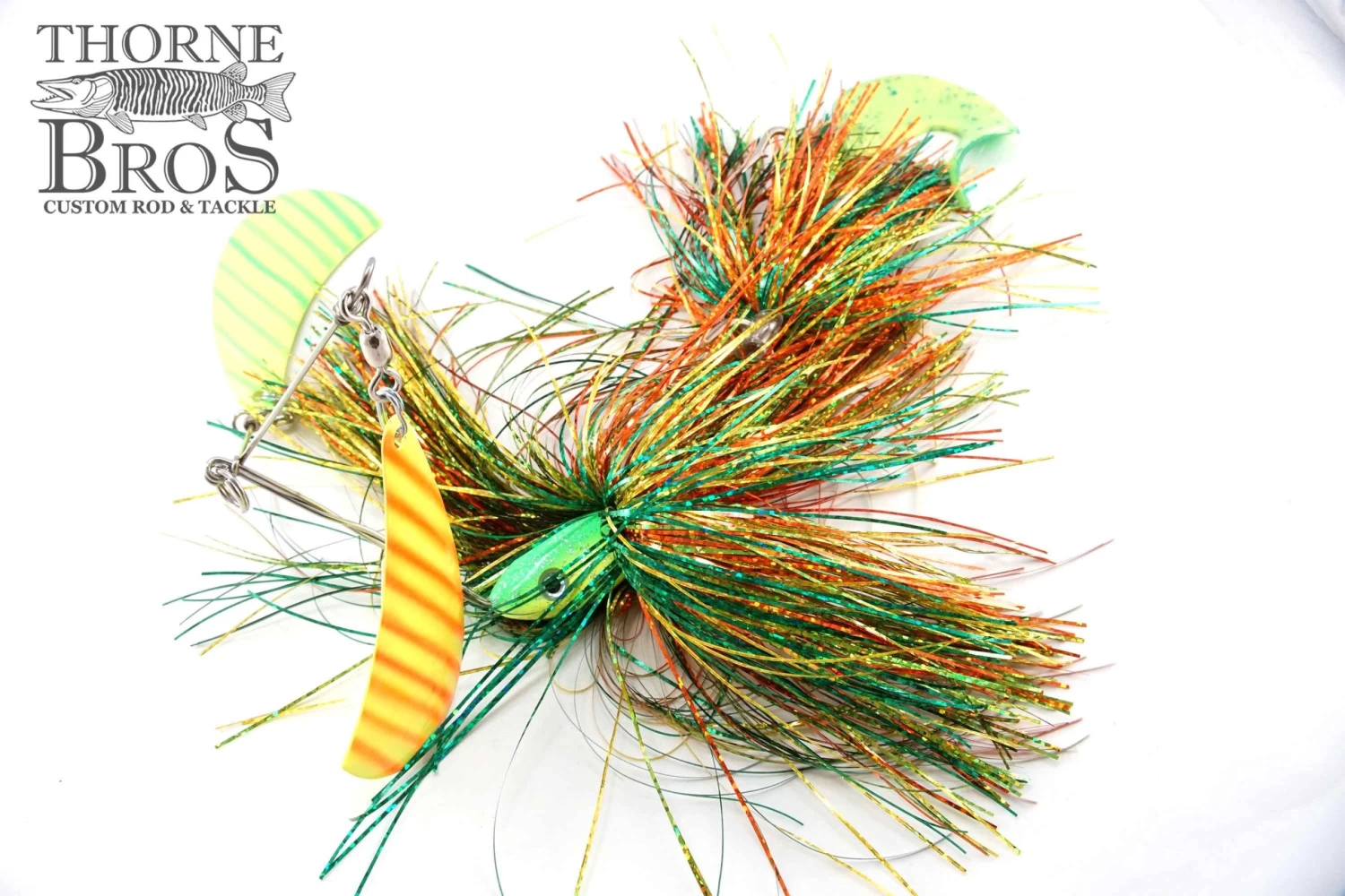 It’s almost like having 2 spinnerbaits in 1! The twin arms use one hatchet blade on each. Flashabou skirts over twin single hooks and Kalin’s grub tail. Maximum vibration. 2.5 oz head.